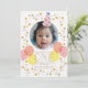 Party Hat & Balloons Pink Photo 1st Birthday Invitation