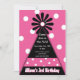 A cute and whimsical bold black party hat and pink and white polka dots is a fun birthday party invitation for any age!