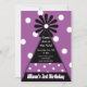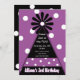 A cute and whimsical bold black party hat and purple and white polka dots is a fun birthday party invitation for any age!