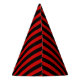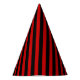 This is a stylish birthday party hat to wear for a party. It features red and black stripes.