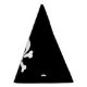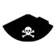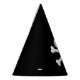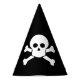This is a fun birthday party hat to wear for a party. It features a white skull and cross bones on a black background.