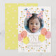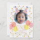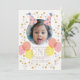 This cute 1st/first birthday party invitation features your photo with a pair of party hats in pink and balloons in pink and yellow. The reverse side features a light yellow background with random triangle and star patterns. Personalise for your needs. You can find more matching products at my store.