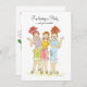 This invitation has three girls on the front and white daises on the back with information to add for your party.