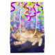 Orange tabby kitty plays with all the confetti from whatever party happens to be going on be it birthday, anniversary, graduation or whatever cat lovers celebration gift bag