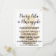 Party Like a Pineapple Tropical Destination Birthday Invitation Postcard. This is a perfect birthday invitation for a Pineapple themed birthday party. The pineapple is faux gold foil with hand lettered text script layered on top. The text can be customised with your information.