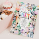 Calling all party animals! Our vibrant watercolor safari animals invitations are bursting with excitement and colour. These cute, modern, and easy-to-edit templates make your child's party unforgettable. Choose from fun designs featuring giraffes, monkeys, elephants, and more, framing a birthday template that's perfect for any age. The reverse is decked in a stylish leopard print rainbow pattern. Make your child's party memorable now.
