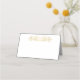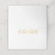 This folded name place card is shown in white with a elegant style gold leaf scroll print.