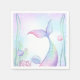 A nautical themed birthday Party Napkins featuring illustrations of the seabed, a cute octopus, an adorable jellyfish, and a magical mermaid tail.