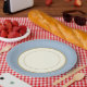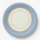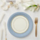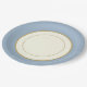 A special occasions or everyday day paper plates designed to look like china plate in design. Decorated with an ivory background with a new shade of Antique Blue colour rim and a coordinating inner trim colour.