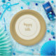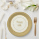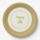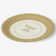 A special occasions or everyday day paper plates designed to look like china plate in design. Decorated with an ivory background with a new shade of matte gold-colour rim and a coordinating inner trim colours of champagne and matte gold. "Happy 50th" in script text written in centre of plate.