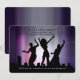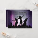 A trendy invitation featuring three people's silhouettes against a city skyline and warm shades of background colours. (Freevector.com - party people). The card is easy to customise with your wording, font, font colour, paper shape options and choice of six paper types.