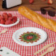 Party plate with ladybug on red and green petals