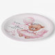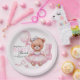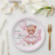 Party Plates for baby shower featuring an adorable watercolor illustration of a teddy bear in a cute pink dress.