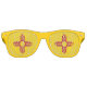 Crafted with meticulous attention to detail, these party shades are more than just eyewear; they're a celebration of New Mexican heritage and state pride. The bold design proudly showcases the iconic Zia symbol on a vibrant yellow background, representing the state's history, culture, and natural beauty.