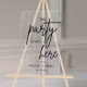 The Party starts here modern wedding welcome sign features calligraphy signature font and the Bride and Groom's name along with wedding date. Click "design tool" button to customise further.