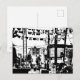 I had some fun with this image! This is an original photograph of Laval Street in Hull (Gatineau) Quebec, Canada. There were so many interesting shapes and patterns that I put the photo into stark black and white to highlight these little delights. Across the top you can see flags strung over the street. There are also coloured lights but of course they don't come out til evening. Signs, as in street signs, are also one of my favourite topics for photography. They always have something to say! In the far back you can see a building under construction; closer in are restaurants, bars and stages for music. This street goes off to the left to Place Aubry, a neat little courtyard with more restaurants, bars and music. This is a little slice of life in Hull and I hope you enjoy it. Original artwork by local artist M Sylvia Chaume, Canada.