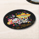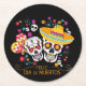 Party Sugar Skulls and Flowers Round Paper Coaster