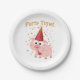 Party time Cartoon Pink Pig with confetti and Hat Paper Plate