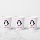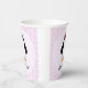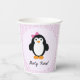 Party time! Cute cartoon girl penguin with pink floral background paper cups.