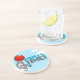 A sandstone coaster for a party gift or decoration, featuring a cute opossom in a striped party hat, floating by on a big red balloon while blowing a star spangled party blower. Use "Personalise this template" to change the "PARTY TIME!" text.