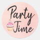 Party Time Pink Watercolor Cupcake Birthday Classic Round Sticker