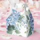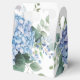 Party favour box is shown in a pretty elegant blue hydrangea floral watercolor print.