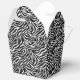 This party favour box is shown in a cute zebra animal print.