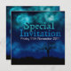 All occasion invitation : Shown here as Birthday - Full Moon tree silhouette twinkling stars midnight blue