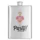 The product is a good size and came exactly as it was pictured. The lid is not attached to the flask, which could be dangerous on drunken nights... The print came out surprisingly well and looks very sharp. Would definitely recommend.
