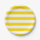 Modern Stylish Yellow White Stripes Template Round Paper Plates.
