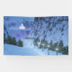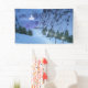 The sparkling snow-covered path is hemmed in by dark fir trees. On the far side of the cleft a translucent glowing fairy castle awaits the enchanted traveller on his journey to fairyland.
