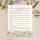 This is a bohemian pass the poem game card for a bridal shower. The design features a colourful and delicate field of summery wildflower florals in pretty shades of blue, terracotta, pink, purple and yellow. The butterflies and bees add the finishing whimsical and pretty touch. You can customise all of the text to your requirements. Please contact the designer for any variations to this design or for additional matching products.