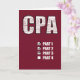 A good studen has passed 3 parts of the CPA test. Congratulate them after passing these important parts. This elegant design in dark red, black and white with the first three parts checked off is perfect for a man or a woman. There are more wonderful cards in this CPA congratulations series. You will find one for passing each part of the test. It will be a lovely surprise to receive your Congratulations this way.