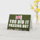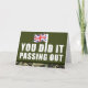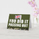 This cool british army passing out card is a great way to congratulate your son/daughter, grandson/grandaughter, niece/nephew or friend on their success and all the hard training they have experienced so far in their military career. Army green design with the union jack flag incorporated in the wording and a camouflage trim.