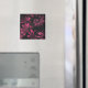 Beautiful, softly embossed abstract artwork with the illusion of hot pink, spiralling flowers. A pink, shiny glass gem accents this piece.