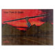 An allegorical depiction of Passover. With a red sunset sky presaging the tragedy that would shortly befall the Egyptians, Moshe's arm holds aloft his staff from behind pyramids in promise of the exodus to occur that night. Customise by adding your own text. The blue and white stripes of Moshe's sleeve evoke the prison garb of those held in Holocaust concentration camps.