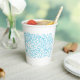 Featuring a cheerful “Happy Passover” greeting, this vibrant cup is decorated with meaningful holiday symbols — traditional matzos, Haggadah, bottles of wine, elegant wine glasses, and playful doodles that reflect the joy and spirit of the celebration. The lively design brings warmth and colour to every place setting.