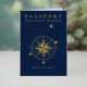 Passport Navy Blue Gold Wedding Save The Date Foil Holiday Card
