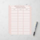 Password Tracker Paper Sheet