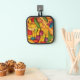 I ordered this product for my Mom as a gift and to check the product quality. It is a good thickness and great quality I am happy to report. She also advised that it will do a wonderful job in protecting her counters from hot pots and will last a really long time- durable. Printing is as expected and color is exactly her color of orange.