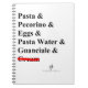 Real Italian cuisine aficionados - and red-blooded Italians - know that real pasta carbonara has the following ingredients: beaten eggs, pasta water, pasta, diced guanciale (cured pork jowl), and Pecorino Romano. The word "cream" is struck out in red. Notebook is ideal for writing down pasta recipes and other items about Italian cuisine.