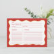 Spice up your bridal shower with this vibrant red and yellow recipe card featuring a charming bowtie pasta border and wavy frame. Designed with a nostalgic Italian flair, this bold design is perfect for kitchen-themed showers, pasta parties, or bachelorette gatherings where guests share their favourite recipes with the bride-to-be. A standout piece for DIY stations or gift boxes.