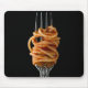 This is some delicious pasta with some light red sauce spun on a silver fork ready for a big bite for the food lover or foodie in your life. YUM.