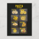 a collection of all my favorite pasta varieties. This colorful "pasta variations" design for postcards in the colors yellow and dark gray with a mamorphobic background, as the classic Italian cuisine usually has or an Italian restaurant in Italy, is a great gift for friends and relatives and lovers of pasta.