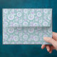 This design showcases a playful abstract pattern of swirling circular motifs and curved wave-like shapes in shades of lavender, soft pink, and mint green. The background is a muted teal, which contrasts beautifully with the pastel elements, giving the design a fresh and modern artistic appeal. A diagonal white band cuts across the centre, elegantly displaying personalised text, creating balance and sophistication amidst the lively backdrop.