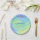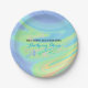 This paper plate design features a new baby celebration design with a colourful swirl of purple, peach, green, and blue. Fill in the personal information template fields, remove text and/or click customise to select a typeface colour, size, and style your prefer.