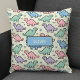 This personalised, playful and nostalgic nursery throw pillow features a pattern of cute, pixelated dinosaur silhouettes in soft, pastel '90s arcade colours like mint green, baby blue, pastel pink, and lavender hues, creating a fun yet gentle aesthetic.