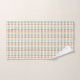 Modern and stylish bath towel set features pastel coloured argyle diamond pattern on white background.