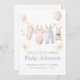 Send out an invitation as precious as the new bundle of joy on the way with this sweet pastel clothesline baby shower card!
