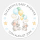 Gorgeous elephant theme thank you sticker tag featuring adorable mummy and baby elephant with balloons in pastel blue, yellow, mint and grey